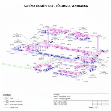 Nous concevons des systèmes CVC (Chauffage, Ventilation, Climatisation) et des installations électriques qui minimisent les consommations tout en maximisant le confort des utilisateurs. Notre objectif : l'efficacité énergétique et le respect des réglementations environnementales (ex. : RE 2020).